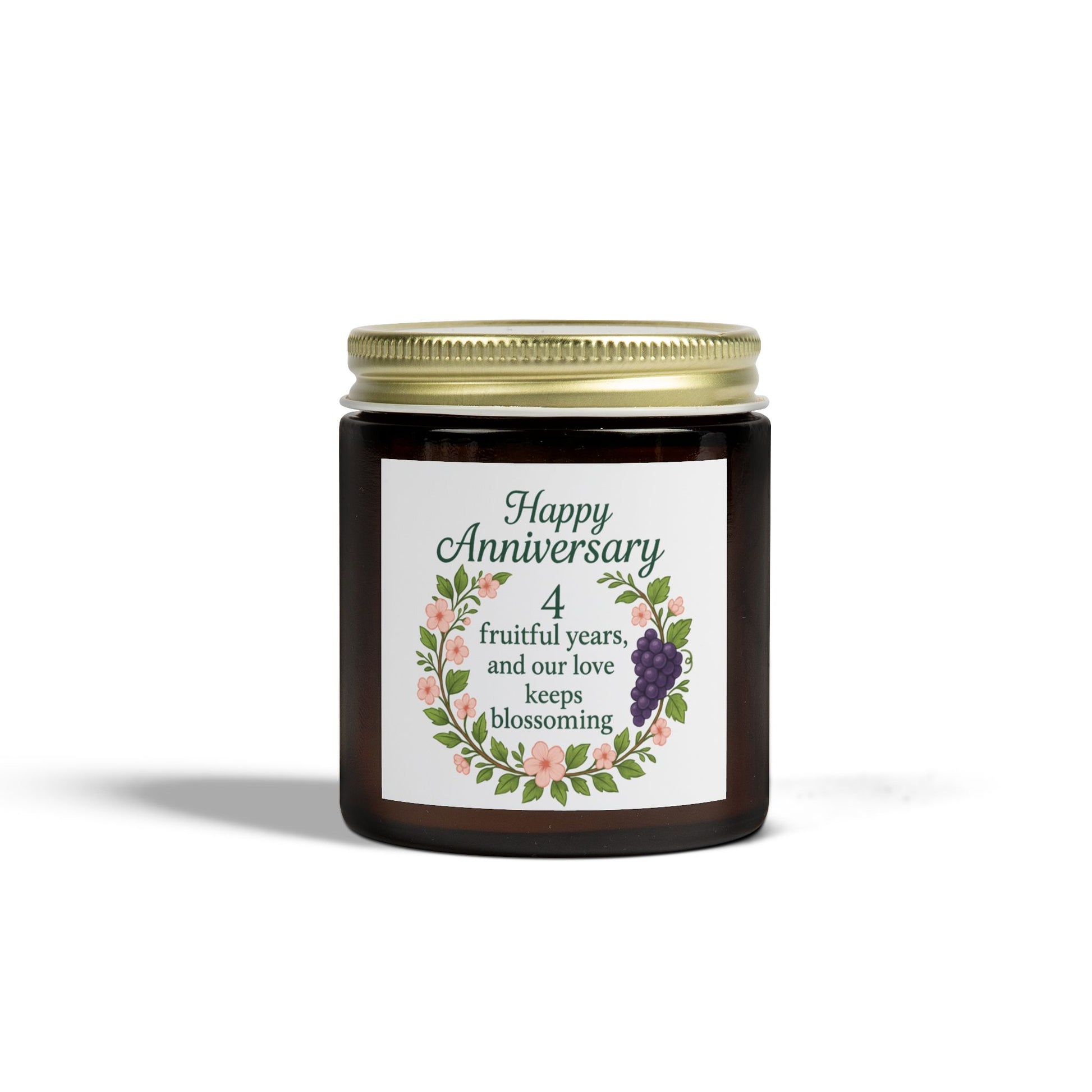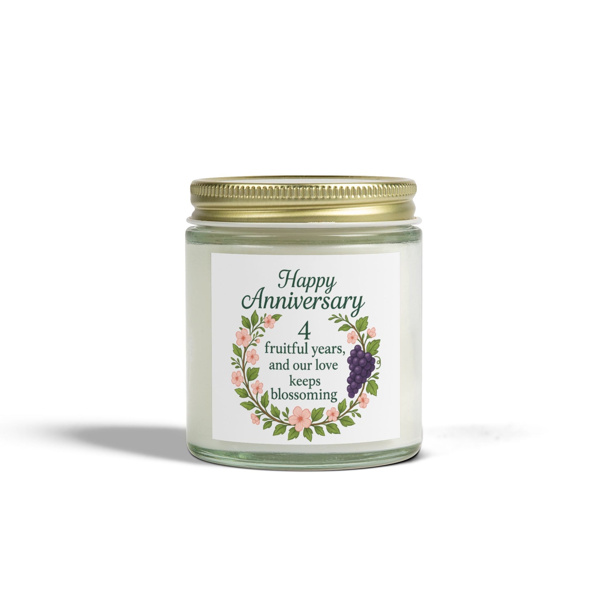 Adorned with a romantic grapevine and floral wreath, paired with the phrase “Happy Anniversary — 4 fruitful years, and our love keeps blossoming,” this candle is the perfect way to celebrate a milestone filled with growth, sweetness, and lasting romance. Hand-poured with care, it’s ideal for creating a cozy, intimate atmosphere — whether you’re celebrating at home, sharing dinner, or giving a thoughtful gift. A beautiful keepsake to mark four years of love that keeps on blossoming.