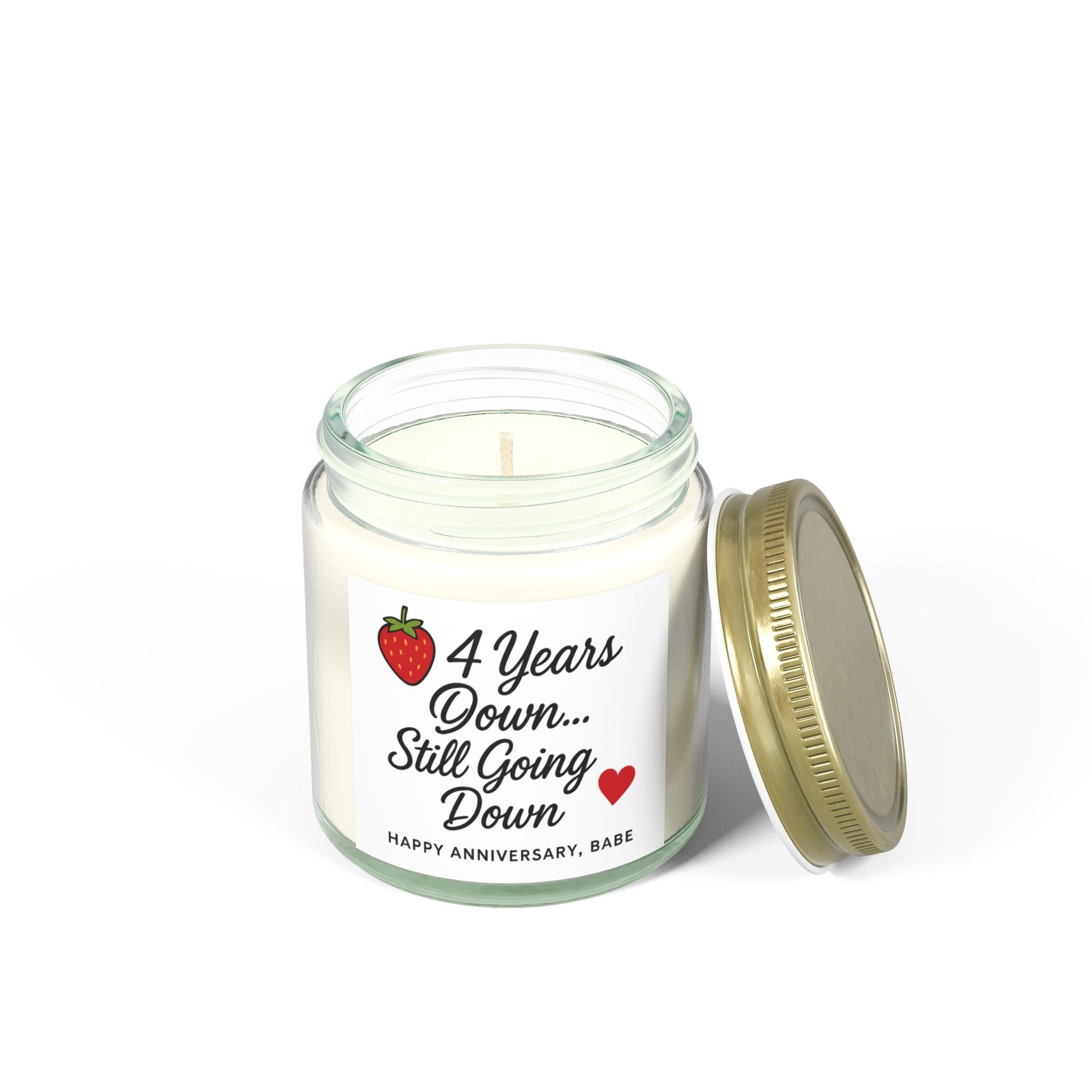 Celebrate four hilarious, love-filled years with this cheeky 4th Anniversary Candle, featuring the playful quote: “4 Years Down… Still Going Down” Sweet, spicy, and just the right amount of naughty — this candle is made for couples who still keep the spark (and laughter) alive.