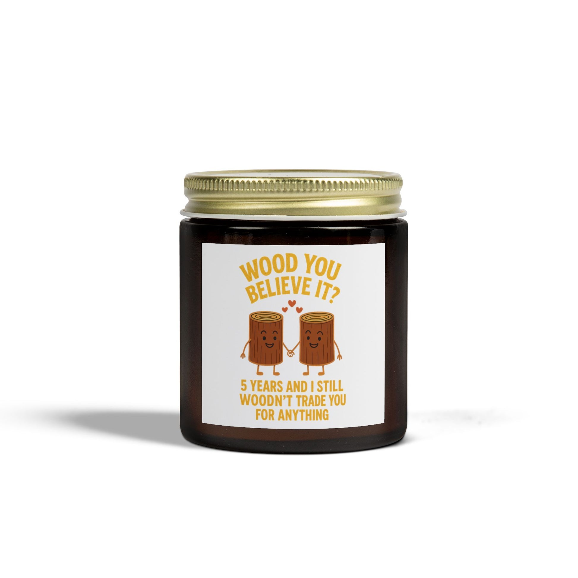 Five years of love, laughter, and memories deserve to be honored with something as heartfelt as this wood anniversary candle.