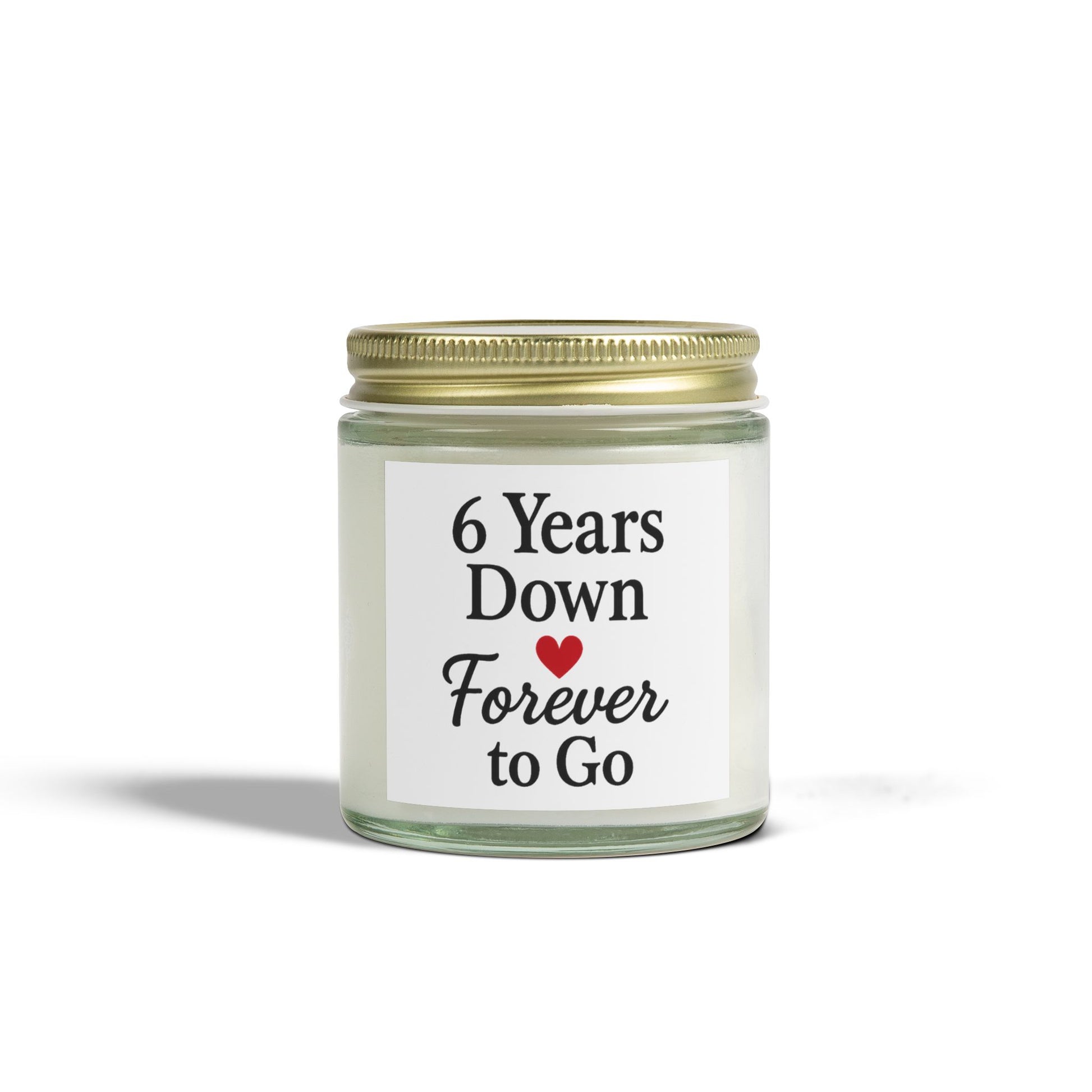 This candle features the touching design: “6 Years Down Forever to Go” — the perfect way to honor six years of marriage and the forever still ahead.