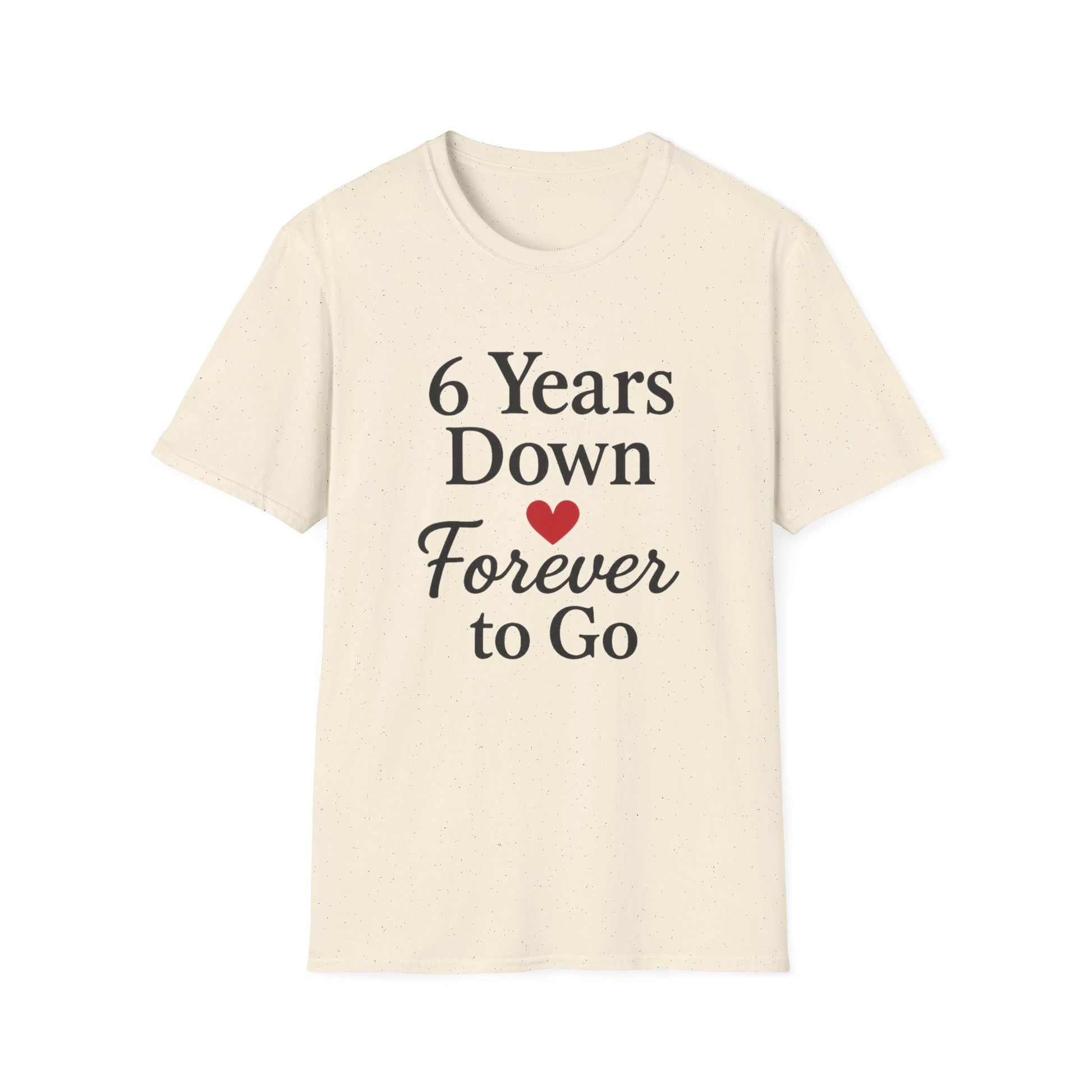 This shirt features the heartfelt design: “6 Years Down Forever to Go” — the perfect way to celebrate your love story and the journey still ahead.